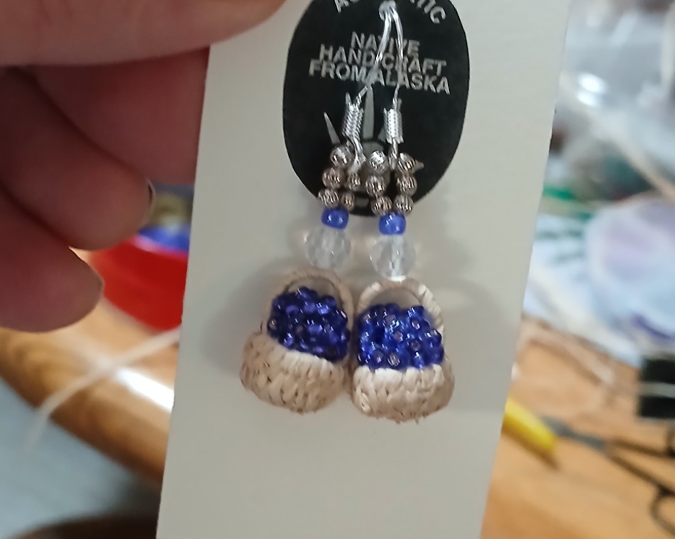 Authentic $ Contemporary Indigenous Crafts specializes in miniature hand-weaved berry baskets earrings.